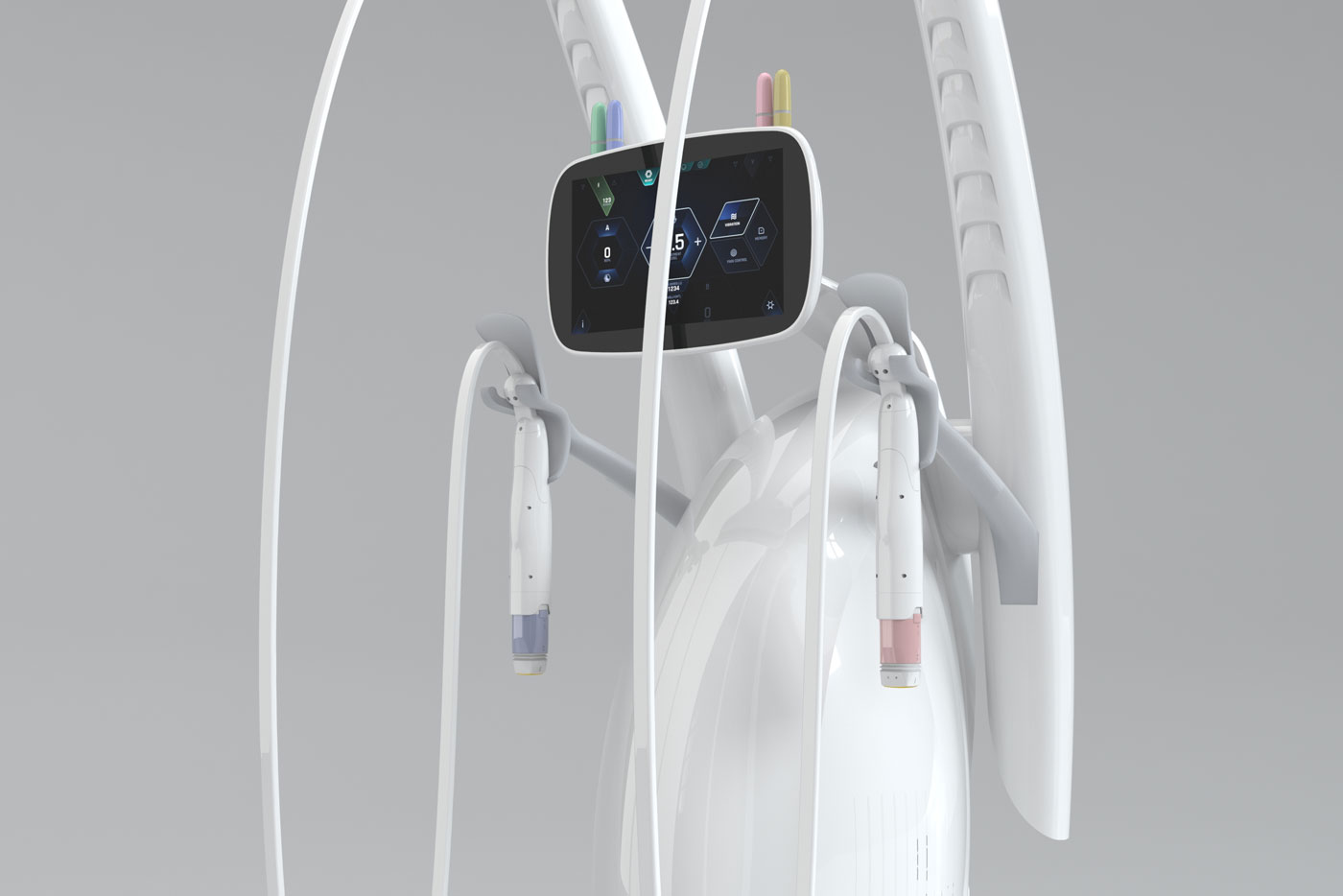 Благодаря четырем разным насадкам, оснащенным контактным охлаждением, процедура проходит комфортно на любых участках лица и тела.